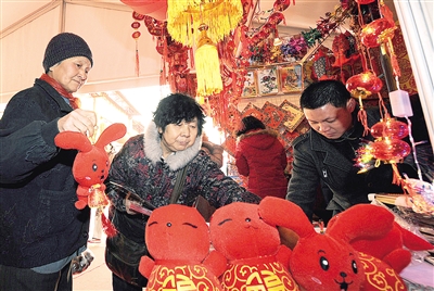 左图 1月3日,顾客在“年货大集”上购物。当日,由京城商贸企业与20余个省区市土特产原产地对接合作的“年货大集”开门迎客。