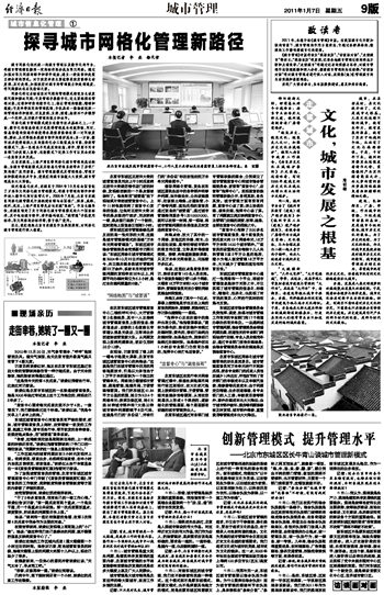 东城区城市管理监督中心通过一张网络和一个平台,将城市管理信息集纳于无形之中,不仅实现了城市管理的信息化、标准化、精细化、动态化,也实现了对市民的意见、心声进行实时的收集与反馈。