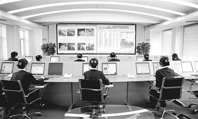 在北京东城区城市管理监督中心二楼的呼叫中心,大厅前排有3名接线员,其中一人正接到城市管理监督员上报的信息:接此信息后,后排的3名值班长审核确认消息无误后,立即将任务派遣给城管监察大队。从问题发现上报到问题解决,前后仅用时35分13秒。