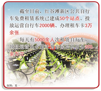 徜徉在红谷滩街头,不时可见市民骑着绿色自行车的悠然身影。2009年8月,新区以“政府支持、企业运作”的运营模式,推出公共自行车免费租赁系统,不仅缓解了市民出行难,也传播着绿色低碳的理念,社会效益和生态效益凸显。