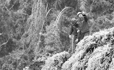 1月8日,广西灌阳县电力公司的技术人员在抢修输电线路。近期,受持续雨雪冰冻天气影响,广西桂北的资源、全州等多县输电线路出现不同程度的覆冰状况,桂林供电局及时启动应急预案,及时抢修故障,确保电力供应,让群众温暖过冬。 新华社记者 陈瑞华摄