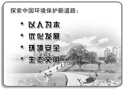 历时3年的中国环境宏观战略研究,标志性成果是提出了探索中国环境保护新道路的命题。这个命题是一个动态、开放、创新的体系,需要不断在认识上深化,实践上开拓。中国环保新道路是推进我国环境保护的方式、方法和途径,探索中国环保新道路就是要努力使之付诸实践。