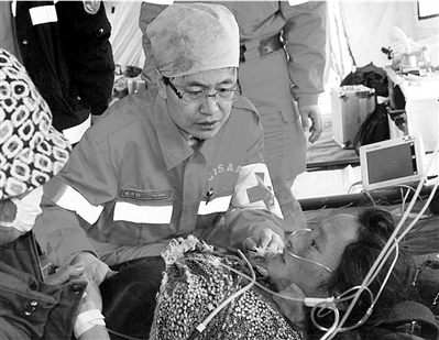2008年5月12日汶川大地震发生当天,他就带领医疗队赶到灾区。每当发现废墟下的幸存者,他总是第一个钻进去,根据埋压部位和伤情,制定科学施救方案。20多个日夜,他争分夺秒、抢救生命。
