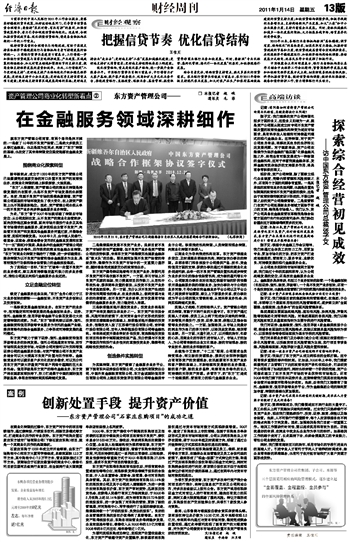 为了实现这一目标,“东方”打破单一处置不良资产的业务模式,建立具有持续稳定盈利能力的多业务模式,推动公司真正向现代金融服务企业迈进。