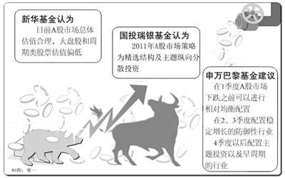 2010年,中小盘股走出了一轮独立行情。进入2011年,A股市场是否延续结构性行情,投资者应该采取什么样的投资策略,又该关注哪些行业?近期,市场主力投资机构,基金公司2011年投资策略陆续发布,普通投资者可以参考他们的思路,做出自己的判断。