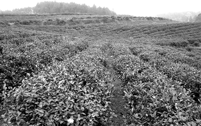 大屯村的连片茶园,茶花在寒风中尽情绽放。 本报记者 王新伟摄
