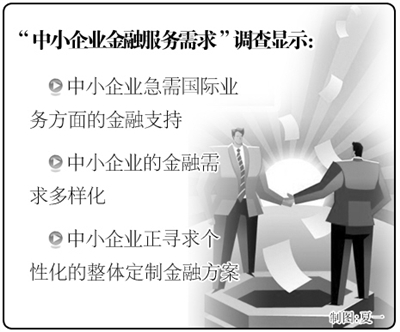 汇丰银行(中国)有限公司日前发布的“中小企业金融服务需求”调查报告显示,中小企业的金融需求多样化,中小企业急需国际业务方面的金融支持,中小企业正寻求个性化的定制金融方案。报告显示,59.8%的受访中小企业希望获得银行个性化的定制金融解决方案,而在众多金融服务中,国际贸易和供应链方面的服务被34.8%的受访中小企业列为其最需要的金融服务。