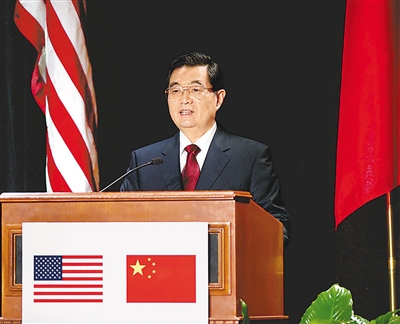 胡锦涛表示,展望未来,我们对中美关系发展前景充满信心。在这里,我愿就推动中美关系更加健康稳定地向前发展提出如下主张。第一,着眼大局,立足长远,积极推进中美伙伴合作。双方应该以更加广阔的全球视野和与时俱进的思维方式看待和处理中美关系,走出一条相互尊重、平等互信、互利共赢、共同发展之路。第二,抓住机遇,开拓创新,努力构建互利双赢的中美经济合作新格局。中方愿同美方一道,推动建立两国更加全面积极的经济合作框架,开展更大规模的财政、金融、经贸合作,扩大能源、环保、农业、卫生等方面交流合作,拓展新领域合作,使中美经贸合作纽带更加紧密。第三,加强沟通,密切磋商,深化应对全球性挑战及国际和地区热点问题的协调和合作。中美两国应该开展共担责任、共迎挑战的全球伙伴合作,加强在多哈回合谈判、气候变化、能源资源安全、粮食安全、公共卫生安全等全球性问题上的磋商和协调,继续在地区安全、区域合作和热点问题上保持沟通和交流,努力推动国际体系朝着更加公平、公正、包容、有序的方向发展。第四,加深友谊,面向未来,积极促进社会各界友好交流。要加强对两国文化、教育、科技等领域交流合作规划,促进两国立法机关、地方、工商、学术、媒体等社会各界的对话和交流,让更多人成为中美关系发展的支持者和参与者。第五,相互尊重,平等相待,妥善处理重大敏感问题。台湾、涉藏等问题事关中国主权和领土完整,是中国核心利益所在,牵动着13亿中国人民的民族感情。中方希望美方恪守承诺,同中方一道维护两国关系来之不易的良好局面。