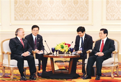 胡锦涛强调,建设中美合作伙伴关系离不开互利互惠经济合作的有力支撑。近年来,美国中西部地区对华交流合作得到长足发展,成为中美关系发展的生动缩影。中方愿同美方一道努力,深挖财政、金融、能源、环境、基础设施建设等领域合作潜力。中美两国同为贸易大国,都是自由贸易的受益者,应该在建设和完善全球贸易体制、推动多哈回合谈判、抵制保护主义等方面作出表率。