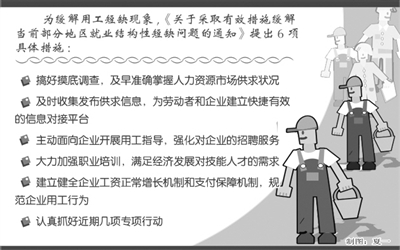 为切实维护就业局势稳定,有效缓解就业中结构性短缺问题,人力资源和社会保障部近日发布了《关于采取有效措施缓解当前部分地区就业结构性短缺问题的通知》(以下简称《通知》),要求各级人力资源和社会保障部门全面准确地把握就业形势,高度重视结构性短缺问题,增强工作的预见性和前瞻性,坚持市场就业的机制和原则,有针对性地采取切实有效的措施逐步加以缓解。