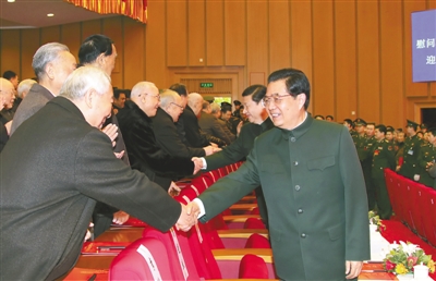 新春佳节到来之际,为民族独立和解放建立卓著功勋,为国防和军队现代化建设作出突出贡献的驻京部队老同志欢聚一堂。回顾极不平凡的“十一五”时期,大家深切感到,在以胡锦涛同志为总书记的党中央坚强领导下,全党全军全国各族人民团结奋进,开拓进取,共克时艰,我国经济社会发展取得巨大成就,国防和军队建设又好又快发展,发生了历史性变化。展望“十二五”时期,大家豪情满怀,一致表示,要更加紧密地团结在以胡锦涛同志为总书记的党中央周围,高举中国特色社会主义伟大旗帜,以邓小平理论和“三个代表”重要思想为指导,深入贯彻落实科学发展观,牢牢把握重要战略机遇期,忠实履行新世纪新阶段我军历史使命,努力开创国防和军队建设科学发展新局面。