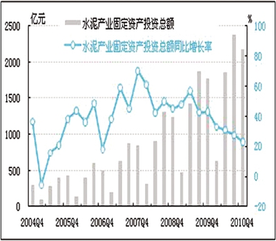 经初步季节调整,2010年四季度水泥产业固定资产投资总额为2176.1亿元,比上季度减少204.0亿元,环比增长8.6%;同比增长22.8%,同比增速较上季度回落4.6个百分点。