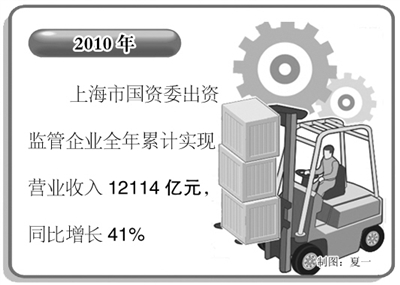 本报讯 记者李治国报道:记者日前从2011年上海市国资国企工作会议上获悉,2010年上海市国资委出资监管企业全年累计实现营业收入12114亿元,同比增长41%;利润总额796亿元,同比增长88%。上海地方国企全年实现生产总值3705亿元,缴纳各类税金总额971亿元。记者了解到,“十二五”期间,上海国资国企将有90%以上的产业集团实现整体上市或核心资产上市,产业集团90%以上的营业收入和利润来自主业,净资产收益稳定在6%以上。