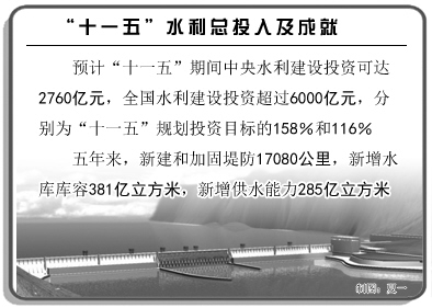 2007年10月,水利部、国家发展改革委、财政部编制完成了《全国病险水库除险加固专项规划》,利用3年时间对6240座病险水库进行除险加固。这也是迄今为止针对病险水库规模最大的一次除险加固。据了解,专项规划的总投资约657亿元,其中中央投资391亿元,地方配套266亿元,投资规模是专项规划实施前10年的1.5倍,项目数量是前10年的3倍。