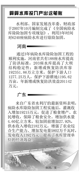 经过“十一五”期间大规模的除险加固,湖北省大中型水库和50%的小(1)型病险水库病险情和安全隐患全部解除,恢复防洪库容6.8亿立方米,恢复兴利库容10.3亿立方米,恢复或新增农田灌溉面积332万亩,年新增或恢复灌溉效益4.9亿元。
