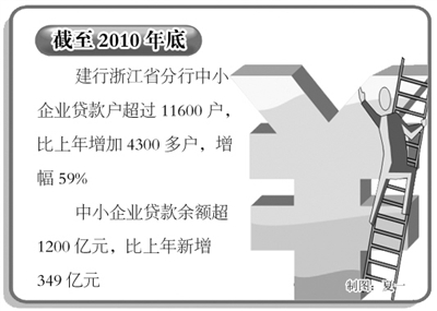 侯建培表示,2010年建行浙江省分行在中小企业及“三农”金融服务方面均取得了显著成绩。截至2010年底,建行浙江省分行中小企业贷款户超过11600户,比上年增加4300多户,增幅59%;中小企业贷款余额超1200亿元,比上年新增349亿元,占了同期公司类贷款余额与增量的42%和97%,在浙江省同业中继续保持领先地位。