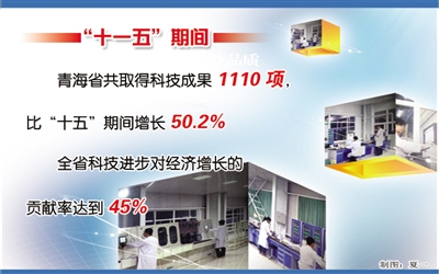 据青海省科技厅提供的资料显示,“十一五”期间,青海省共取得科技成果1110项,比“十五”期间增长50.2%,全省科技进步对经济增长的贡献率达到45%。