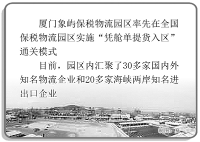 本报讯 记者殷陆君、通讯员刘频报道:率先在全国保税物流园区实施“凭舱单提货入区”通关模式,实现厦金航线进境货物转关,赣州—厦门海铁联运转关、内支线转关……厦门象屿保税物流园区封关运作5年来,不断开拓创新业务运作模式,吸引了众多国内外知名企业争相入驻,不仅成为先行先试的“试验田”,更是成为厦门经济发展的“助推器”。