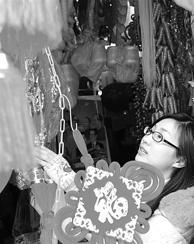1月27日,江西省龙南县市民在超市选购中国结。春节临近,中国结、红灯笼、年画、春联等民俗商品受到欢迎,给新春佳节增添了喜庆气氛。 叶伟贤摄