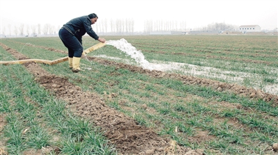 1月27日,河南省温县黄庄镇西虢村农民在浇灌麦田。 徐宏星摄 (新华社发)