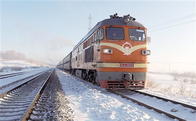 每天早晨8点13分许,一列“绿皮”火车会从辽宁大连驶出,一路向北,开往祖国北端的漠河。冬季的低温严寒给行车带来一些考验。1月28日,列车从大连出发,到达漠河后,当地最低气温达到零下38摄氏度左右,车窗上都结了厚厚的冰花。列车过了哈尔滨站以后,每到停车站,乘务人员都要清理列车上的积冰,保证列车平稳运行。李雨泽摄 (新华社发)