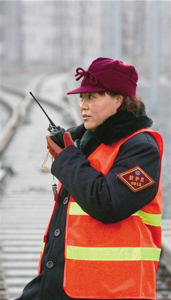 “我的工作虽然是铁路系统中最平凡的工作,但意义重大。我们防护员每天都要顶风冒雪地在铁路上巡查几个小时,就是为了及时排查铁路上的安全隐患。”苏艳对记者说。特别是哈大铁路客运专线开工以来,苏艳和同事们工作起来更加努力。在凛冽的寒风中,她的双颊和耳朵冻得通红,厚厚的棉服也抵挡不住严寒的侵袭,她走在铁轨旁,不时跺脚驱寒。