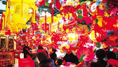 2月3日,游人正在扬州东关街一彩灯店内选购花灯。 当日是正月初一,花灯店成为人们逛街赏灯品传统文化的好去处。 濮良平摄 (新华社发)