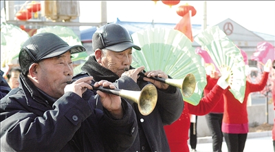 图5:平谷区农民秧歌队的行进表演在春节期间更添喜庆气氛。