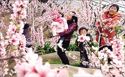 图7:平谷区万亩桃花春节期间陆续绽放,吸引了众多游客。