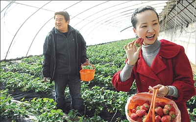 图8:新春佳节,平谷区峪口镇开展温室大棚采摘活动。