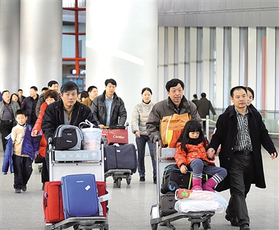 2月8日,返京旅客走出北京首都国际机场3号航站楼。当天是农历正月初六,全国各地陆续迎来春运返程高峰。 本报记者 赵 晶摄