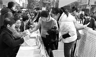 2月8日,在江西乐安县鳌溪镇返乡农民工就业招聘会上,招工人员正在向返乡农民工介绍有关就业信息。 邹春林摄(新华社发)