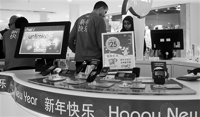 2月7日,加拿大多伦多地区的一家手机运营商在店内推出了中文广告。中国春节期间,多伦多地区的不少商家纷纷推出庆春节中文贺词及广告宣传,吸引华人顾客。 新华社发