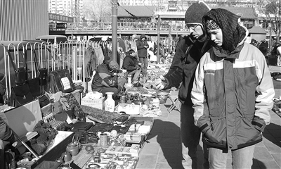虽然近期北京的日均温度都在摄氏零度以下,潘家园旧货市场内依然人头攒动,热闹非凡。摊主们都穿上了厚厚的棉衣,早上八九点一开市,便把自己的货物摆好码齐,搓着手、跺着脚跟前来购物的游客讨价还价。在西区的地摊,只要稍微放慢脚步,摊主便会凑上前来。“您喜欢什么?随便看!”一位来自河南的摊主热情地招呼道。记者在他的摊位前细细挑选,老怀表做工精美,生肖石雕栩栩如生,鼻烟壶小巧玲珑……