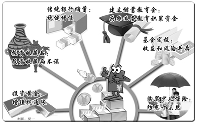 少儿保险理财产品往往具有“教育年金、分红增值、保险保障”等三重功能,可以根据孩子的年龄、家庭的收入和生活习惯选择不同的缴费方式,还可结合孩子的未来规划,选择不同的领取方式。此类产品可多层次、全方位地满足孩子从求学到立足社会所需要的财务规划,包括教育金、教育津贴、出国留学金、创业金、婚嫁金、买房首付款等系列经济需求。