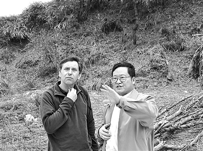 图4:郑永飞(右)在大别山一带进行野外考察。