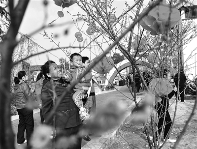 2月9日,江西省定南县岭北镇梅香村游人如织、热闹非凡。当日,该县第一届梅花节在梅香村拉开序幕,吸引众多游客春节期间前来观光。图为游客在观赏盛开的梅花。 本报记者 赖永峰 通讯员 刘海平摄影报道