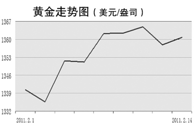 上周国际现货金价从1345.15美元/盎司开盘后,连日逐步攀升,最高盘中曾到1368.65美元/盎司,最低则为1345.02美元/盎司,最终周五收盘于1356.60美元/盎司。进入本周后,英国国家统计局周二公布的数据显示,其1月CPI同比上涨4.0%,创2008年11月以来最大年增幅,而且该升幅较英国央行设定的2%的通胀目标翻番。同时市场预期由于英国目前经济复苏势头不明朗,将阻碍英国央行货币政策委员会采取加息举措。对此,有关业内人士分析认为这将使得部分避险买盘回归金市。受此影响,国际现货金价随后突破先前的盘整区间,于盘中达到1376.60美元/盎司近期高点,截至北京时间2月16日15:30,现货金价为1375.40美元/盎司。