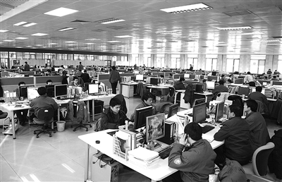 走进技术中心,是一个宽敞明亮的设计大厅。静悄悄的大厅里,除了电脑键盘敲击声外,几乎听不到别的声音。100多名工程技术人员面对电脑伏案工作,场面非常壮观。