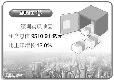 本报讯 记者杨阳腾从深圳市统计局获悉:深圳通过加快推进发展方式转变和结构调整,努力提高发展质量和效益,实现了经济又好又快发展。2010年,深圳实现地区生产总值9510.91亿元,比上年增长12.0%,三次产业比重为0.1:47.5:52.4。