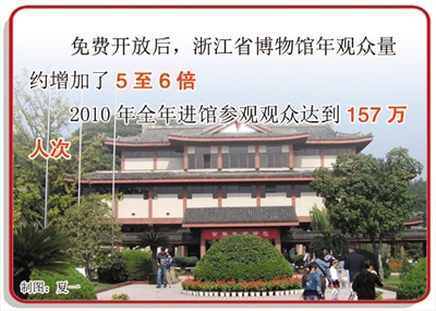 放眼全省,鲍贤伦告诉记者,浙江省列入免费开放的博物馆,纷纷通过对设备、设施的改造,提高观众的可进入性和舒适性,同时延伸为观众服务的领域。“余姚河姆渡遗址博物馆在馆区外围新增了如厕场所和餐饮服务设施;嘉兴市有不少博物馆在为观众免费提供热水和纸杯的同时,还配置了医药箱,购买了晕车、消炎等常用药品;舟山市岱山县针对部分博物馆地处偏僻的情况,开辟了博物馆参观专线车……”鲍贤伦介绍道。
