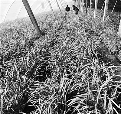1月29日,菜农在山东邹平县西董镇尚庄村有机韭菜大棚内收割韭菜。