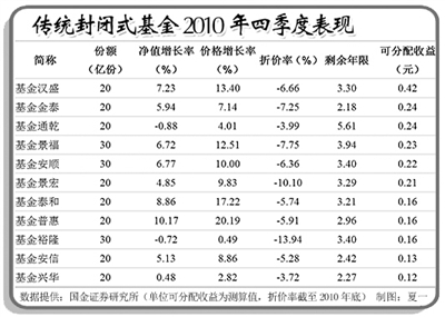 此外,从单只基金的份额增长情况来看,前期曾一度密集推出的中小盘基金,在2010年四季度既有份额增长翻番的,也有份额下降50%以上的。总体来看,业绩差异是主要动因。