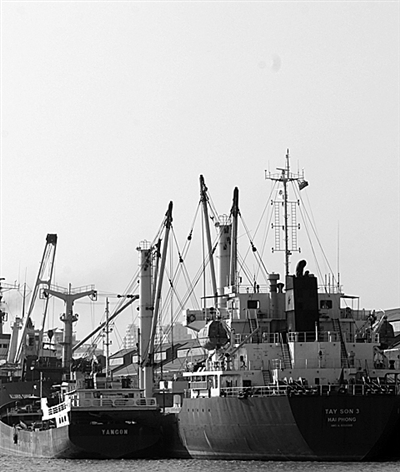 缅甸国家和平与发展委员会颁布缅甸经济特区法,以进一步吸引外资,发展经济。图为缅甸仰光港口停靠的货轮。 新华社发