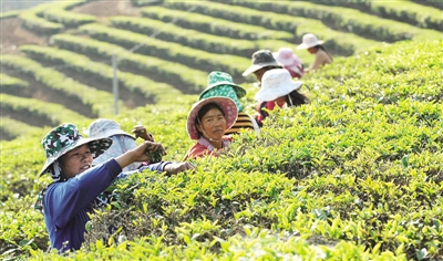 一些茶农在云南省西双版纳傣族自治州景洪市大渡岗茶厂采摘春茶(2月22日摄)。近期,随着气温回升,云南省西双版纳傣族自治州的茶园陆续进入采摘期。目前,西双版纳全州的茶园面积达72万亩。 新华社记者 蔺以光摄