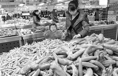 2月24日,北京物美大卖场右安门店蔬菜品种丰富,供应充足。 近期,在一系列稳定物价政策的作用下,全国主要城市食用农产品价格涨势放缓,蔬菜、水产品价格回落。 本报记者 张 欣摄