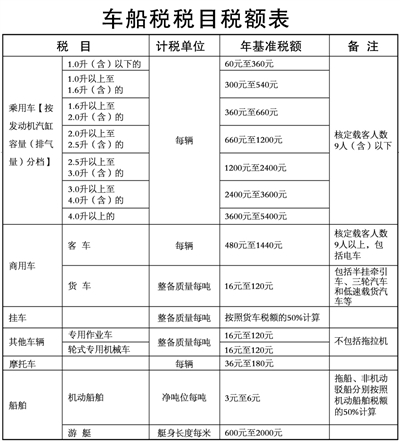 第二条 车船的适用税额依照本法所附《车船税税目税额表》执行。