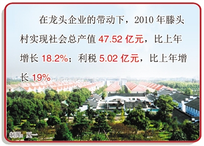 在园林公司和爱伊美集团等企业的带动下,2010年滕头村实现总产值47.52亿元,比上年增长18.2%;利税5.02亿元,比上年增长19%。