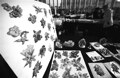 众多手工制作爱好者聚会德国柏林,共同分享手工制作的乐趣。图为手工制作爱好者制作的装饰花卉在柏林展览馆展销。 新华社发