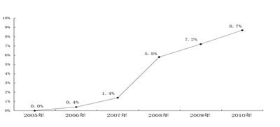 2010年,中国人保保费收入2457亿元,是2005年的3.7倍;保费增量市场份额达到20%,居行业第一,市场份额上升至16.9%,比2005年提高了3.7个百分点。“十一五”期间,中国人保总资产年均增长39%,5年提高了5倍,管理总资产提高了10.5倍。